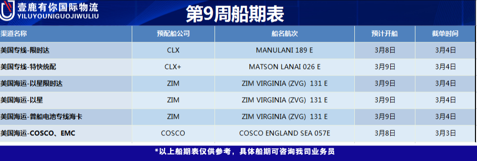 2023年壹鹿有你 I 第九周船期表